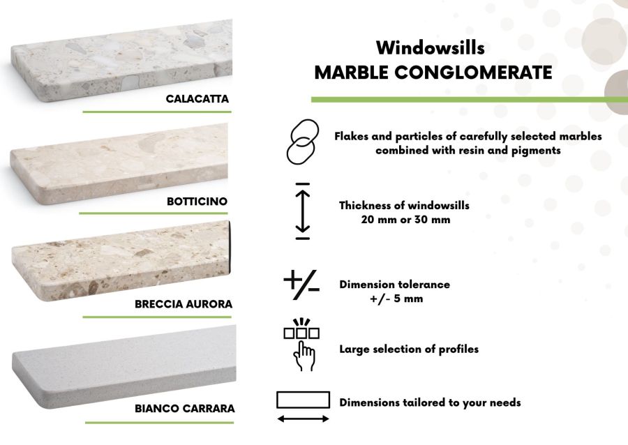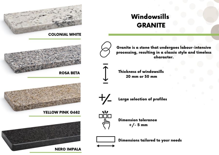 Aluminium or granite window sill? Or maybe conglomerate, which will give your interior a unique atmosphere. With us you can do it all! We offer a wide range of designs and materials.
