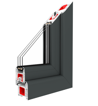 7-chamber frame and sash profiles made exclusively of prime material in A-class with installation depth 82 mm.
