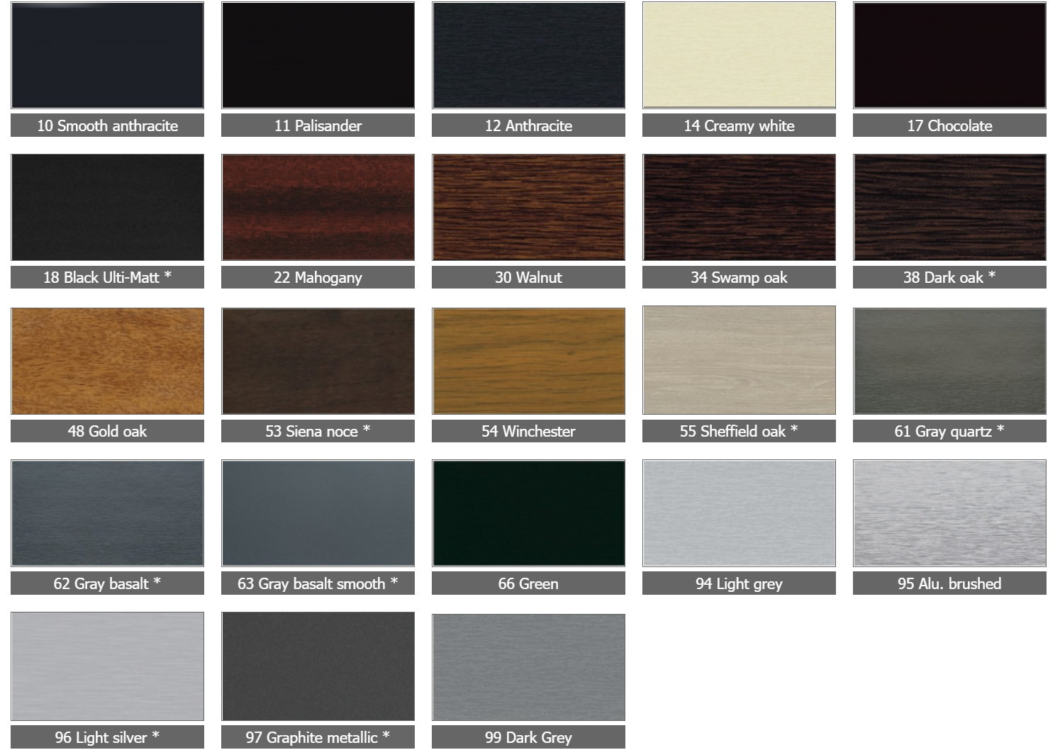 According to the RAL color range and wood-grain coating from Aluprof ColorCollection.